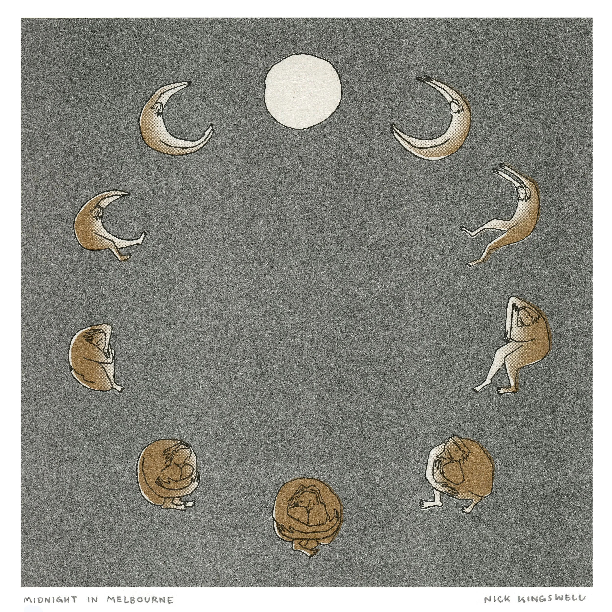 Riso printed album artwork for Nick Kingswell’s latest song ‘Midnight in Melbourne’. The drawings in the album artwork make up the frames for the stop motion animated Spotify canvas.